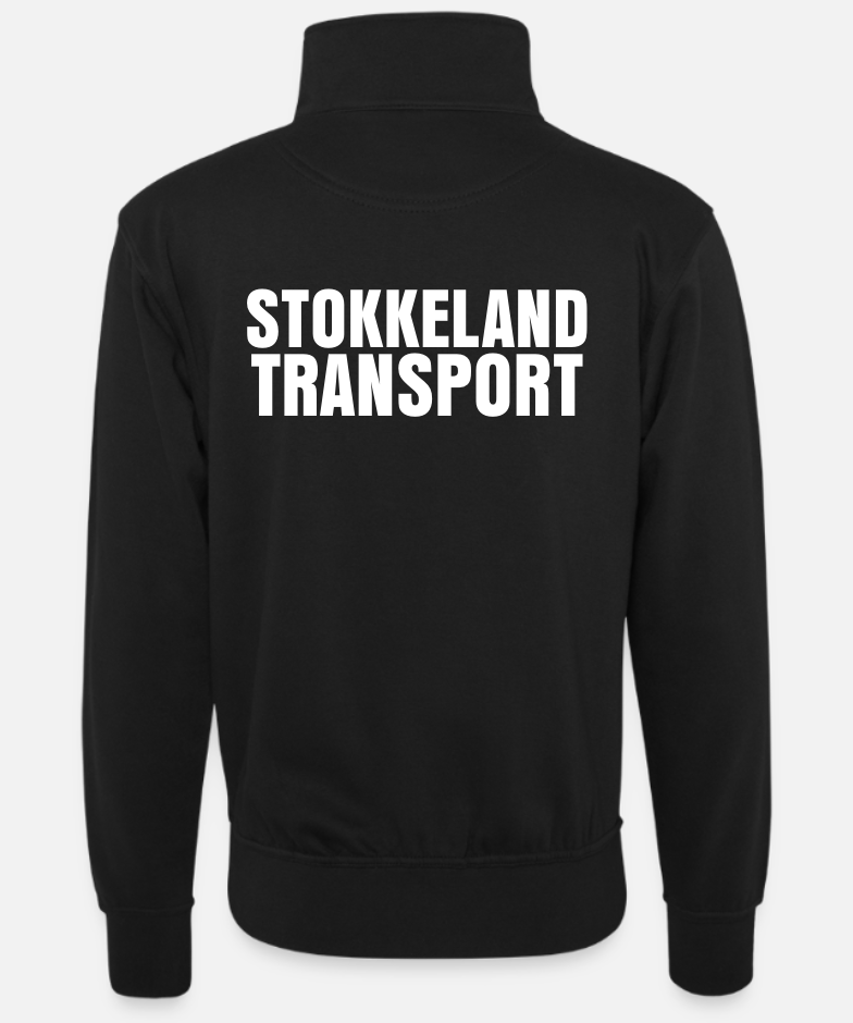 En allsidig og komfortabel genser med praktisk halv glidelås og et tydelig Stokkeland Transport-design.